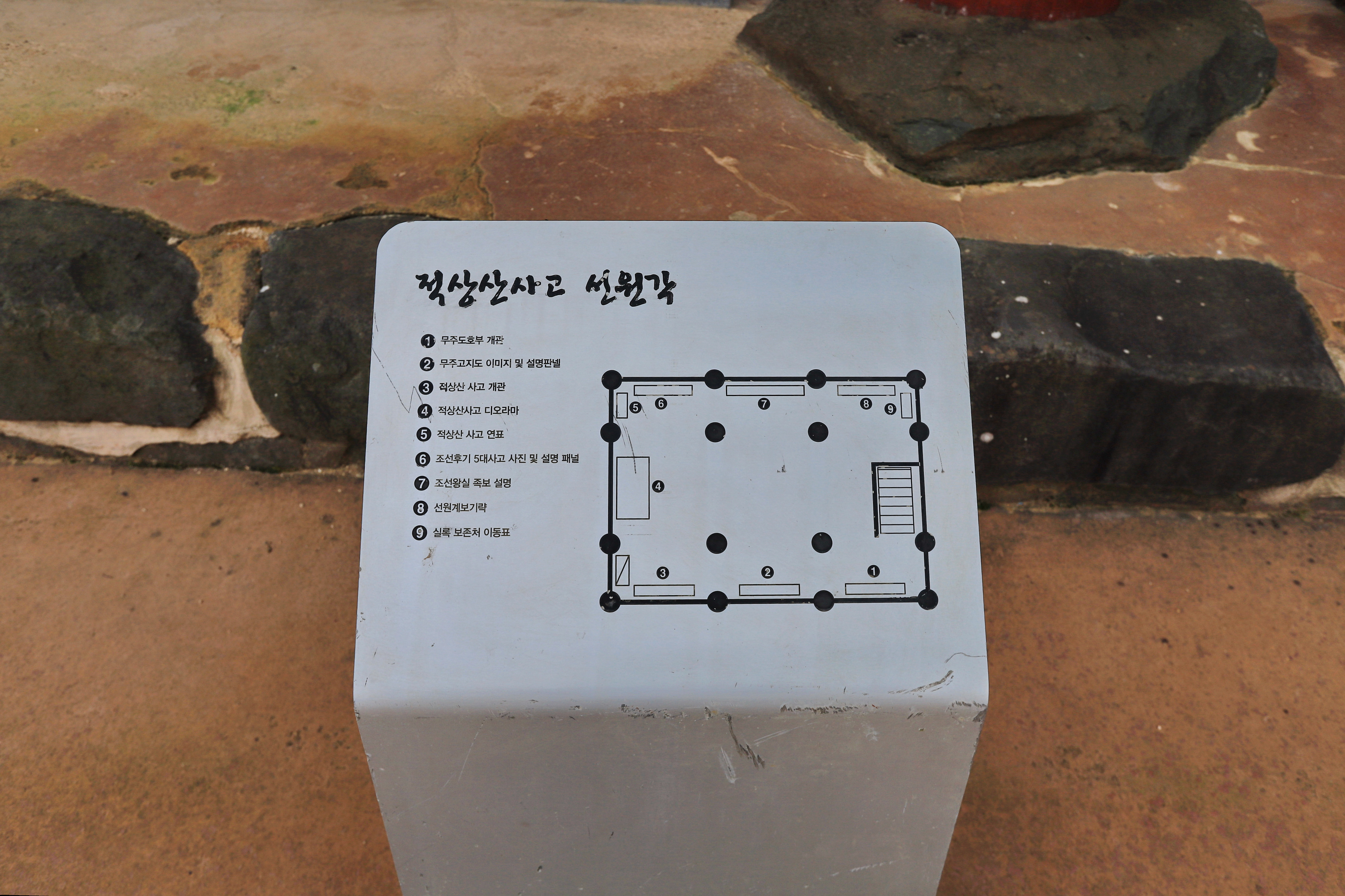 적상산 사고는 조선시대 조선왕조실록과 왕실의 족보, 의궤 등을 보관하던 곳이다. 현재는 실록과 족보를 보관하고 있지 않으면, 1992년 양수발전소 댐 축조로 원래의 사고지가 물에 잠겨서 현재의 위치로 유구(옛날 토목건축의 구조와 양식을 알 수 있는 실마리가 되는 자취)가 옮겨진 것이다. 그나마 현재는 보수 중이어서 외부만 보고 왔다