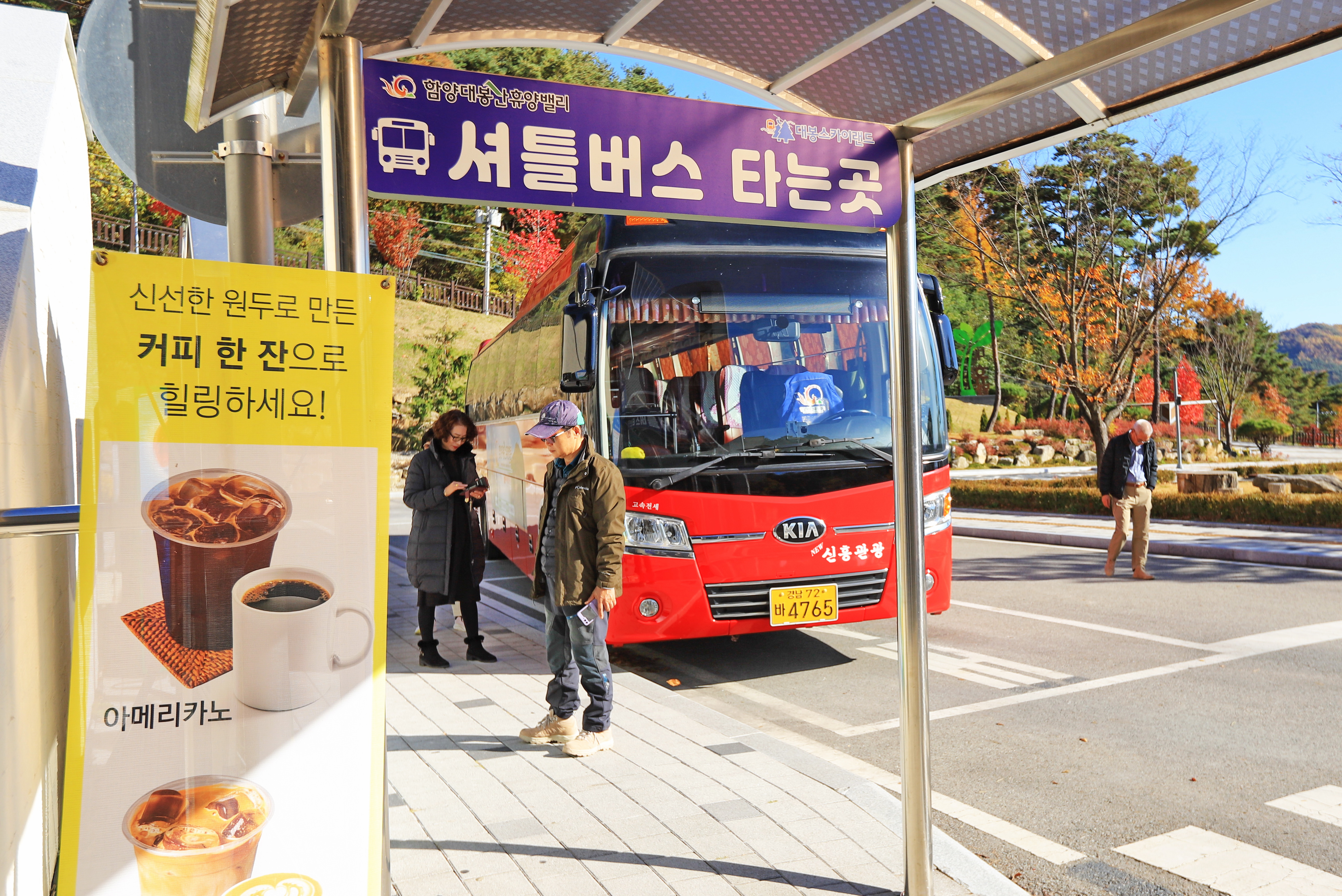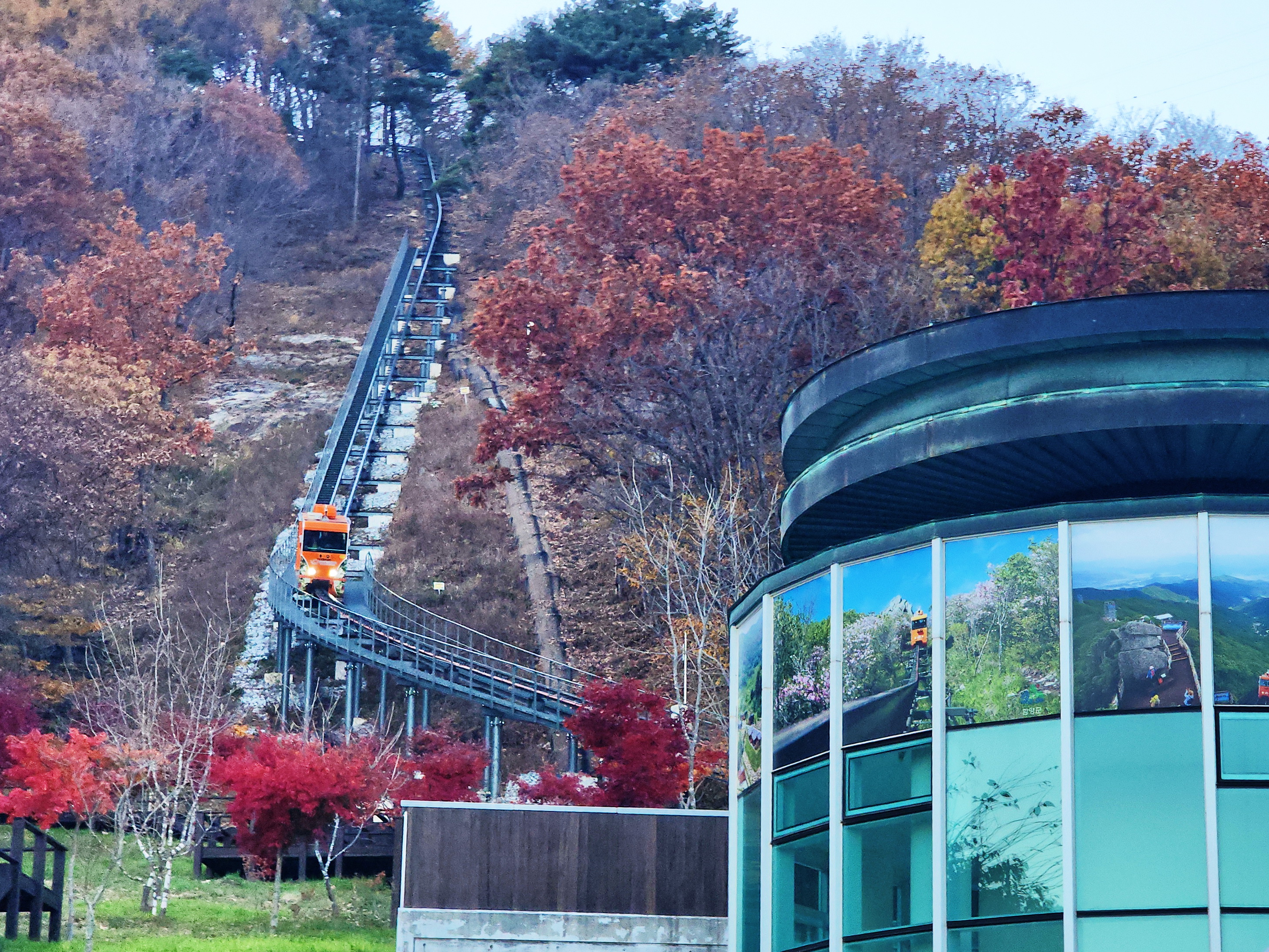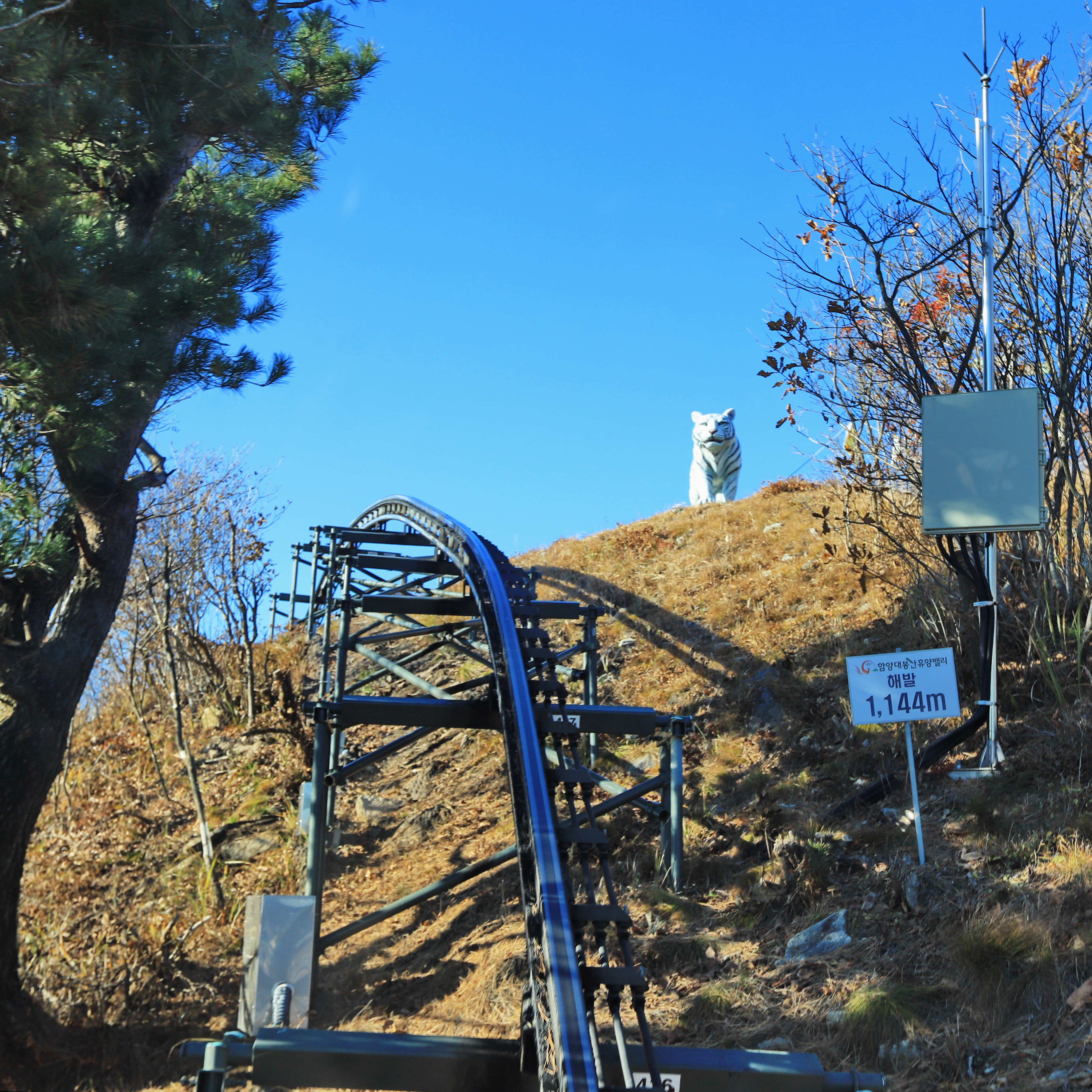 국내 최초 산악 관광 모노레일이다. 대봉산 하부승강장에서 정상을 잇는 3.93km로 사계절 아름다운 대봉산의 천혜절경과 주변풍경을 감상하며 편안하게 정상에 오를 수 있는 대봉산휴양밸리 대표 체험코스이다. 모노레일을 타려면 대봉휴양밸리관에서 셔틀버스를 10분간 타고 하부승강장으로 간다. 올라가는 모노레일은 35분 걸리며 경사가 매우 급한 곳이 많아 스릴감이 있다. 정상에서 자유롭게 구경하고 다시 35분 걸려 하부승강장으로 내려와서 휴양밸리관 주차장으로 셔틀버스를 타고 온다. 오르는 코스와 내려오는 코스가 다르다. 왕복으로 8인승 모노레일의 제일 앞자리에 앉아 귀한 사진을 찍을 수 있었다. 평일인데는 탑승권이 일찍 매진되었다.