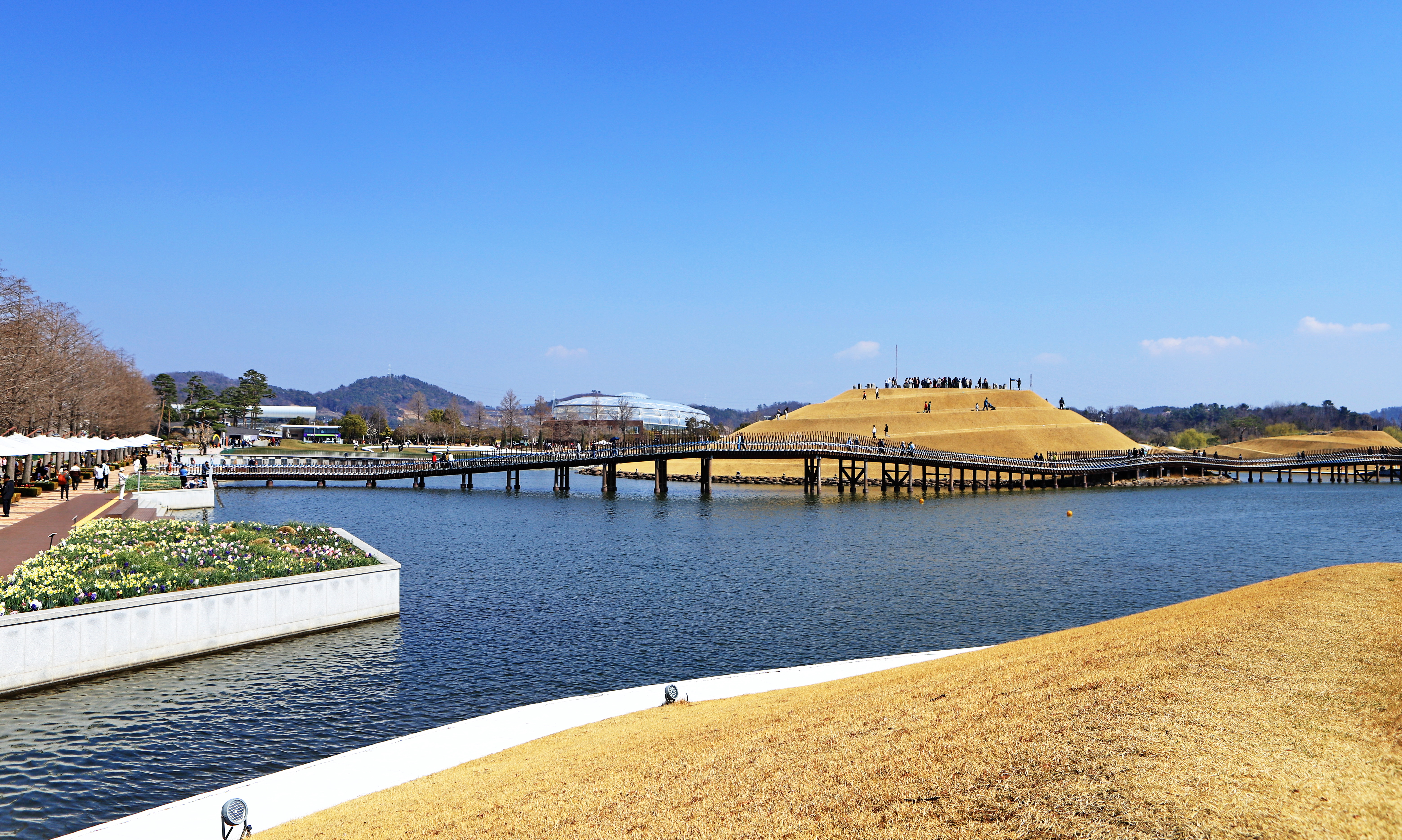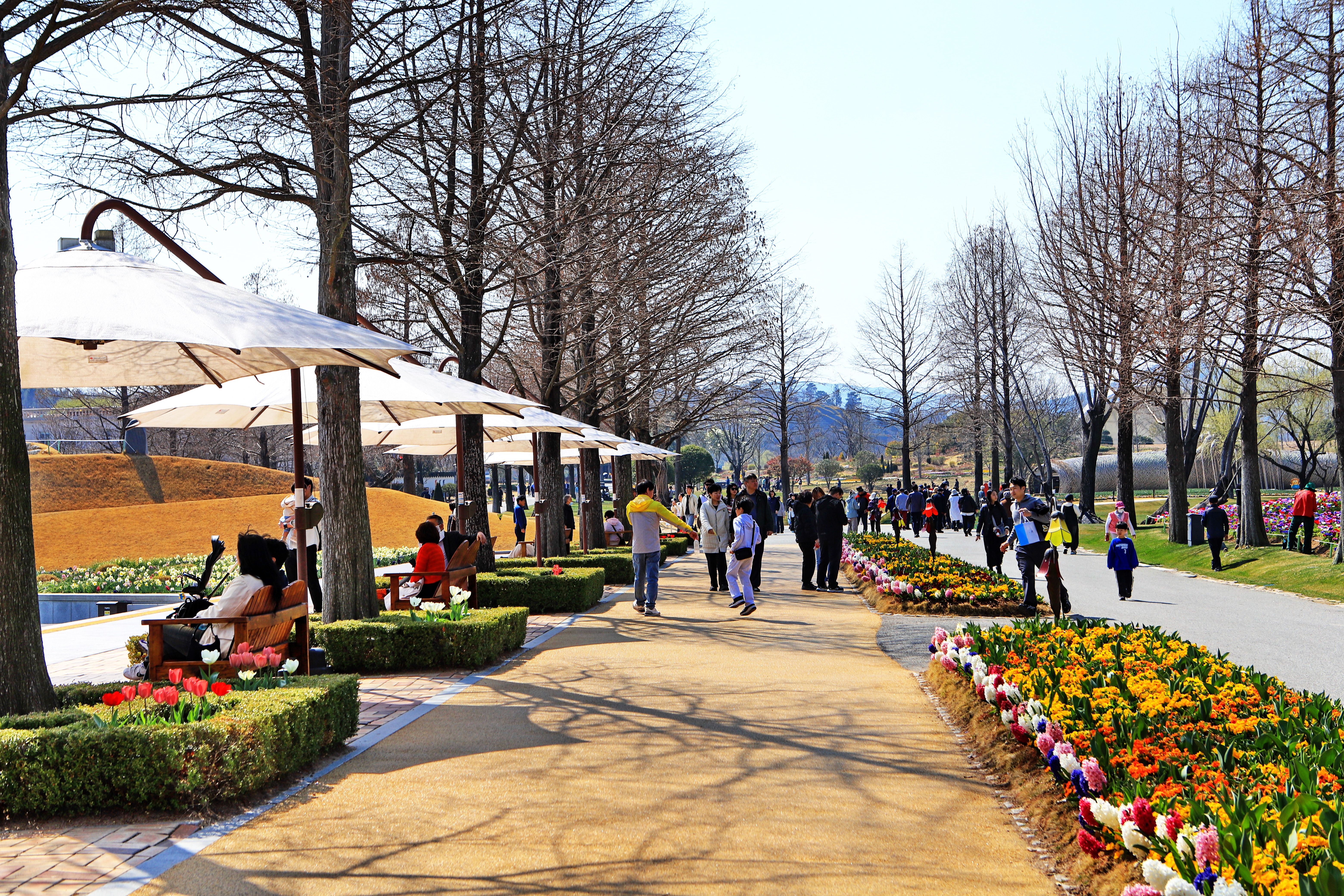 순천만국가정원을 다녀왔습니다. 정원에 들어서자 가장 먼저 눈길을 사로잡은 것은 수로를 따라 유유히 미끄러지는 유람선이었습니다. 물살을 가르며 나아가는 배 위에서 사람들의 환한 웃음소리가 들려오고 그 풍경 자체가 하나의 움직이는 수채화였습니다. 유람선의 활기를 뒤로 하고 걷기 시작하자 이번에는 봄꽃들이 주인공으로 나섰습니다. 이제 막 꽃망울을 터뜨린 꽃들이 저마다의 색깔로 산책로를 수놓고 있었습니다. 햇살 아래 반짝이는 꽃잎들은 마치 관광객들의 화사한 옷차림과 경쟁이라도 하는 듯했고, 정원 전체가 꽃과 사람의 미소로 가득 차오르는 느낌이었습니다. 꽃길을 따라 걷다 보니 세계 각국의 정취를 담은 세계 정원들이 차례로 나타났습니다. 나라마다 고유한 미학이 담긴 조형물과 식생들의 이국적인 풍경은 걷는 즐거움을 배가시켜 주었습니다. 산책의 대미를 장식한 곳은 식물원이었습니다. 아늑하고 조밀한 생명력으로 가득했습니다. 귀한 식물들이 뿜어내는 짙은 초록의 기운은 긴 산책 끝에 기분 좋은 휴식을 선사해 주었습니다. 유람선에서 시작해 식물원으로 마무리한 이번 여행은 '생기가 돋아나는 봄' 그 자체였습니다. 관광객들의 환한 표정만큼이나 밝았던 모든 순간이 올봄 최고의 기억으로 남을 것 같습니다.